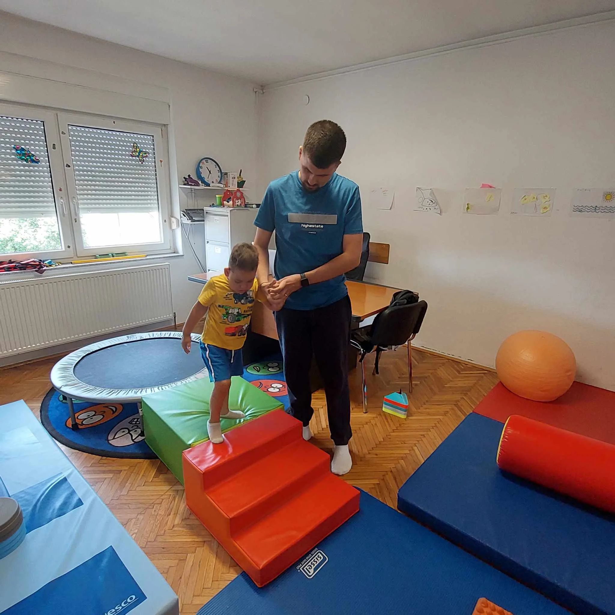 Fizioterapijska djelatnost obuhvaća dječju neurorazvojnu terapiju. Fizioterapeut provodi terapiju djece i mladih osoba i to kod asimetrije držanja i pokretanja u ranoj dojenačkoj dobi, razvojnih poteškoća i kašnjenja u usvajanju posturalnih reakcija, kod povišenog ili sniženog mišićnog tonusa, poremećaja percepcije, kod patološkog držanja i pokretanja, oštećenja vida, senzoričkih poremećaja. U fizioterapiju se uključuju djeca s problemima u balansu, koordinaciji pokretanja, nesigurnosti u hodu, motoričke nespretnosti, lošeg držanja, posturalnih problema, skolioze i sl. Cilj terapije je poboljšanje djetetovih sposobnosti i prepoznavanje vlastite kompetencije. Pretpostavka za realizaciju ovog cilja je odgovarajuća neurofiziološka procjena funkcionalnog i razvojnog statusa djeteta koja je temelj za svaku terapijsku intervenciju.