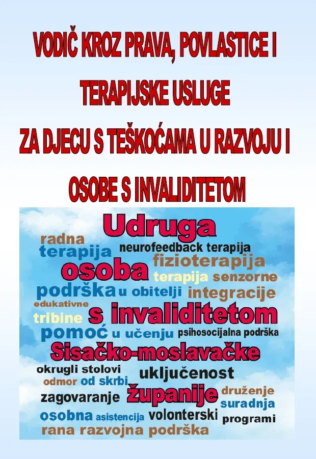 Udruga osoba s invaliditetom Sisačko-moslavačke županije u sklopu treće godine provedbe programa „Mala kuća – Velika pomoć“ sufinanciranog financijskim sredstvima Ministarstva rada, mirovinskoga sustava, obitelji i socijalne politike kroz poziv „Razvoj i širenje socijalnih usluga za razdoblje od 2023. do 2025. godine“ pripremila je tiskani i online Vodič kroz prava, povlastice i terapijske usluge za djecu s teškoćama u razvoju i osobe s invaliditetom.